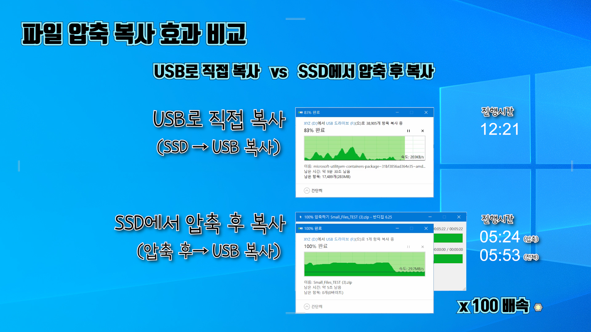 USB로 직접복사 vs 하드디스크에서 압축 후 복사 속도 비교