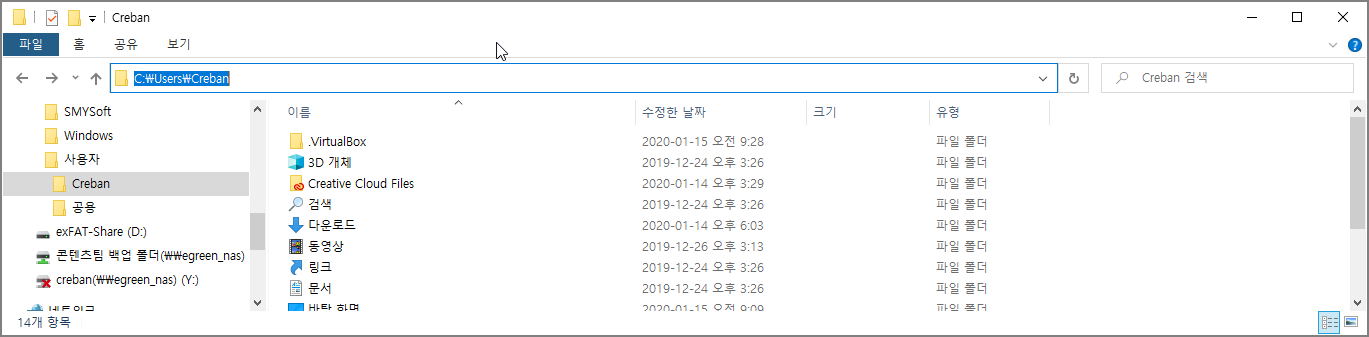 ② 상위 폴더로 이동하여 Creban 폴더삭제 (또는 이름 변경)