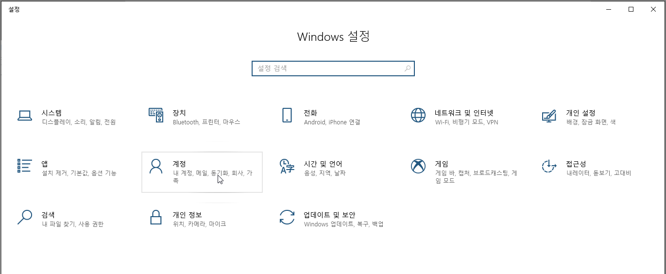 ① [로고] + i 클릭하여 "설정" 으로 이동, 계정 클릭