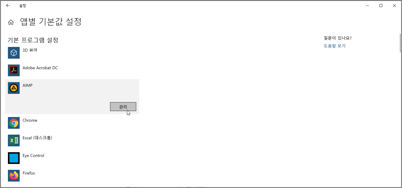 ② AIMP 음악 플레이앱 선택 및 관리 클릭