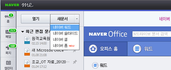 2. 새문서 > 네이버 워드 클릭