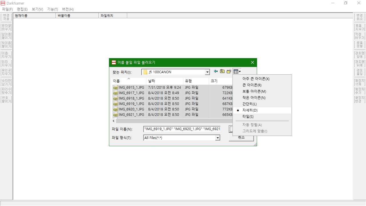 파일 이름 일괄 변경 DarkNamer 08.02.10 실행파일 (목록 정렬 버그 수정)