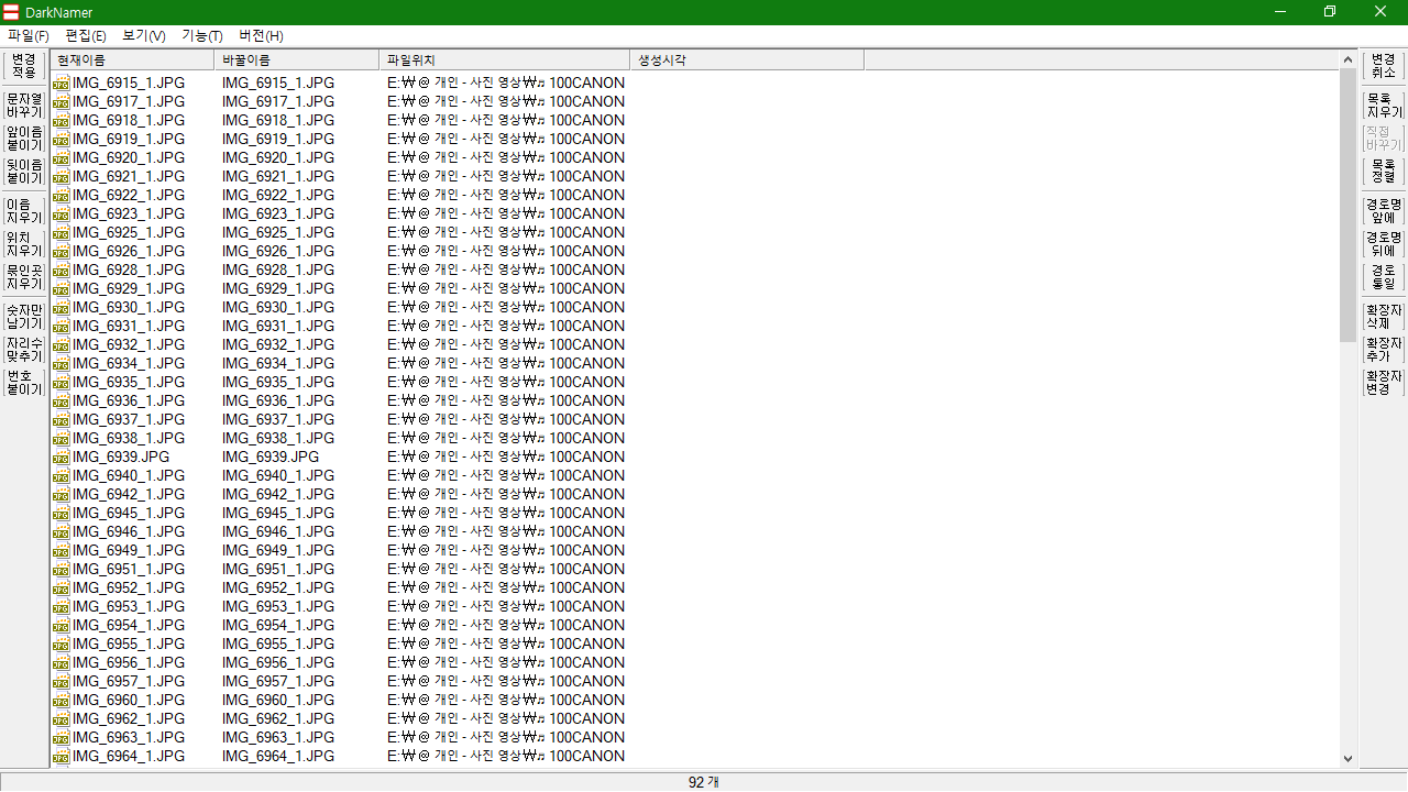 | 변경 취소 | 바꿀이름에 적용된 바꾸기를 초기화 한다. (클릭하면 바로 실행됨) | IMG_6938_시험파일.JPG IMG_6941_시험파일.JPG IMG_6939_시험파일.JPG |