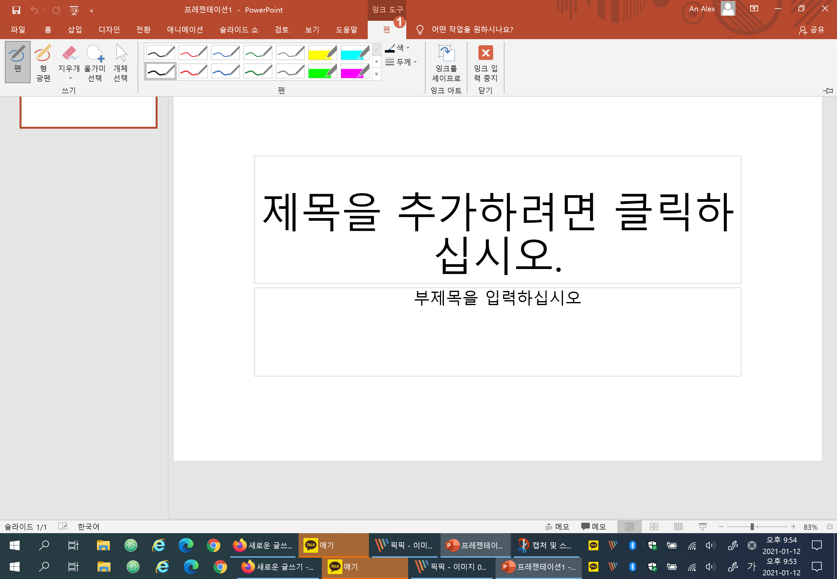 펜이 인식되면, 잉크도구, 펜이 활성화 됩니다.