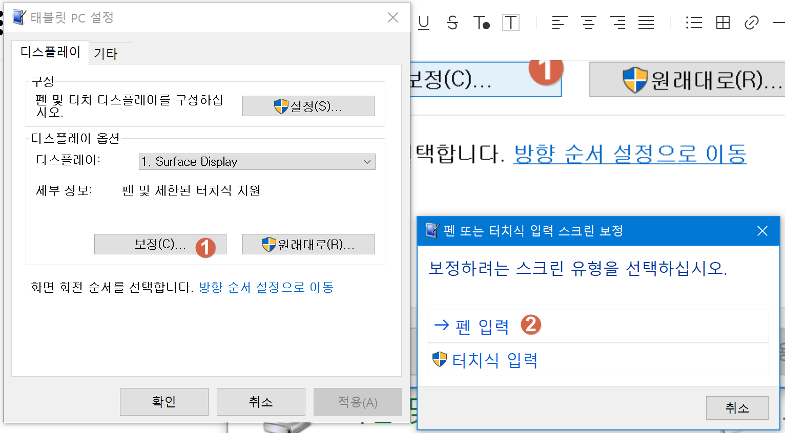 2. 보기를 큰 아이콘, 또는 작은아이콘으로 변경 후, 태블릿 PC 설정 클릭