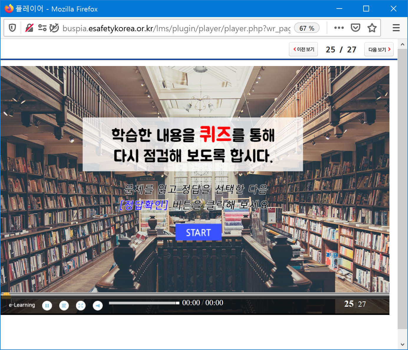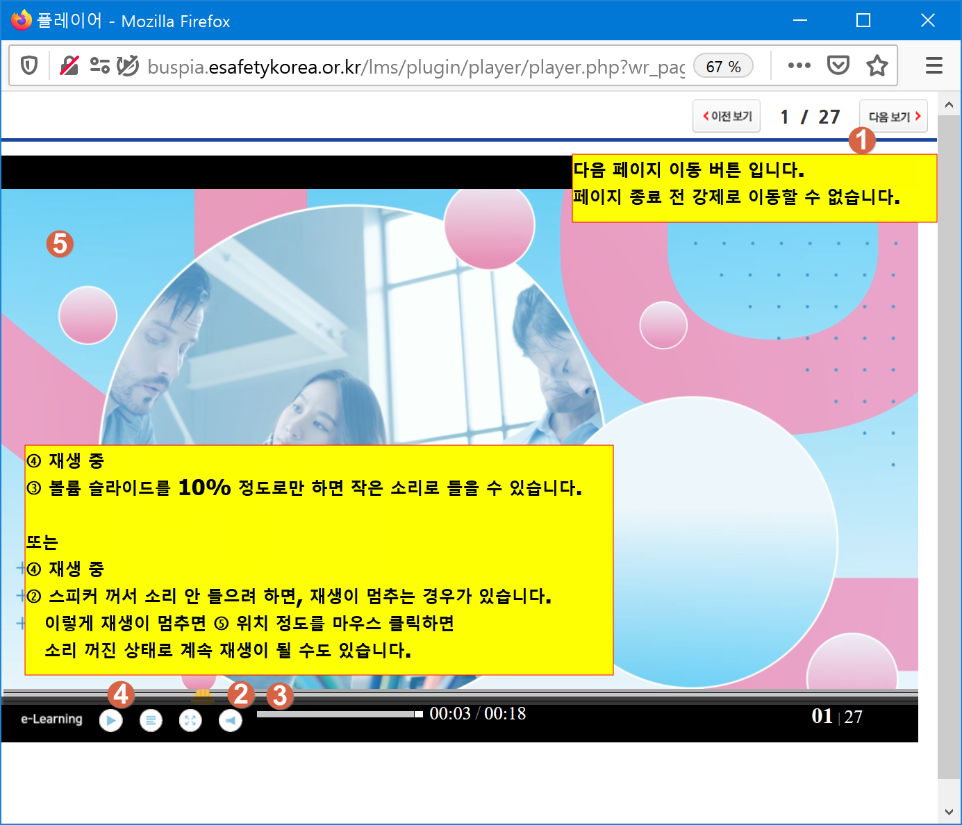 - 강의창 다음 페이지 이동 및 소리끄고 수강하는 방법