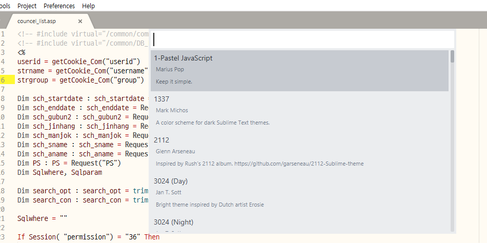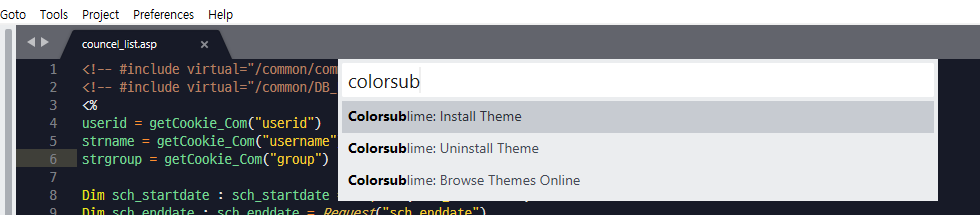 4. colorsublime 실행 ==> (1. Ctrl + Shift+ P , colorsublime: ins... 입력)