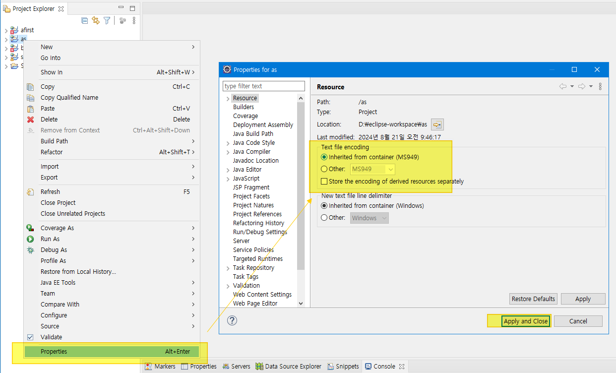 MS949로 되어있는경우, 프로젝트 환경설정의 내용을 변경하는 것도 거추장스럽고, 파일을 매번 utf-8로 변경해 줄 수 도 없고,