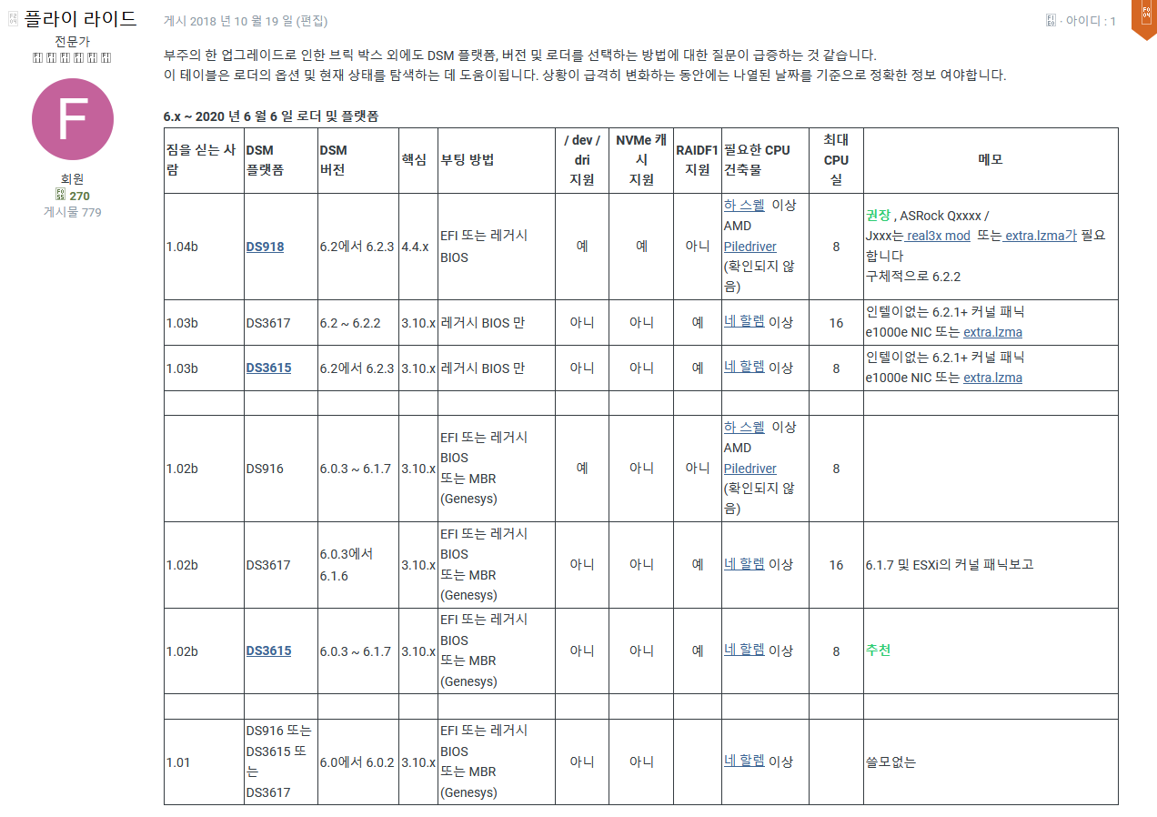 헤놀로지 Synology jun's Loader의 시스템 사양에 대한 자료를 참고해서 나 처럼 당황해 하지 말자