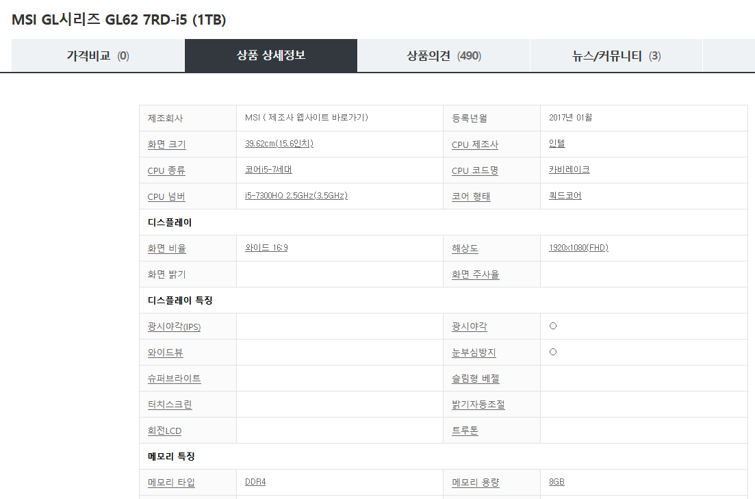 코어i5-7세대, i5-7300HQ, RAM16, NVMe 512, Realteckrealtek pcie gbe family controller